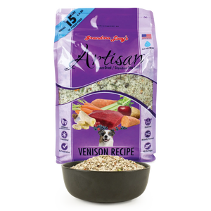 Fresh, easy to prepare, freeze-dried, nutritious, complete and balanced meal, topper, or snack for your pup. Just add water to our grain-free Grandma Lucy's Aritsan Venison and watch it transform into a hearty, stuffing like consistency within minutes. Packed with gently cooked USDA venison and featuring a blend of super food ingredients including flax, carrots, celery, apples, blueberry and cranberry. Shelf stable, lightweight, and preservative-free. Fresh, wholesome nutrition made simple. Artisan, the original and best-selling recipe, is a fantastic combination of digestibility and palatability, making it a perfect way to introduce natural feeding into your pet’s diet. This recipe is an ideal choice for a pet with food sensitivities or a picky eater.