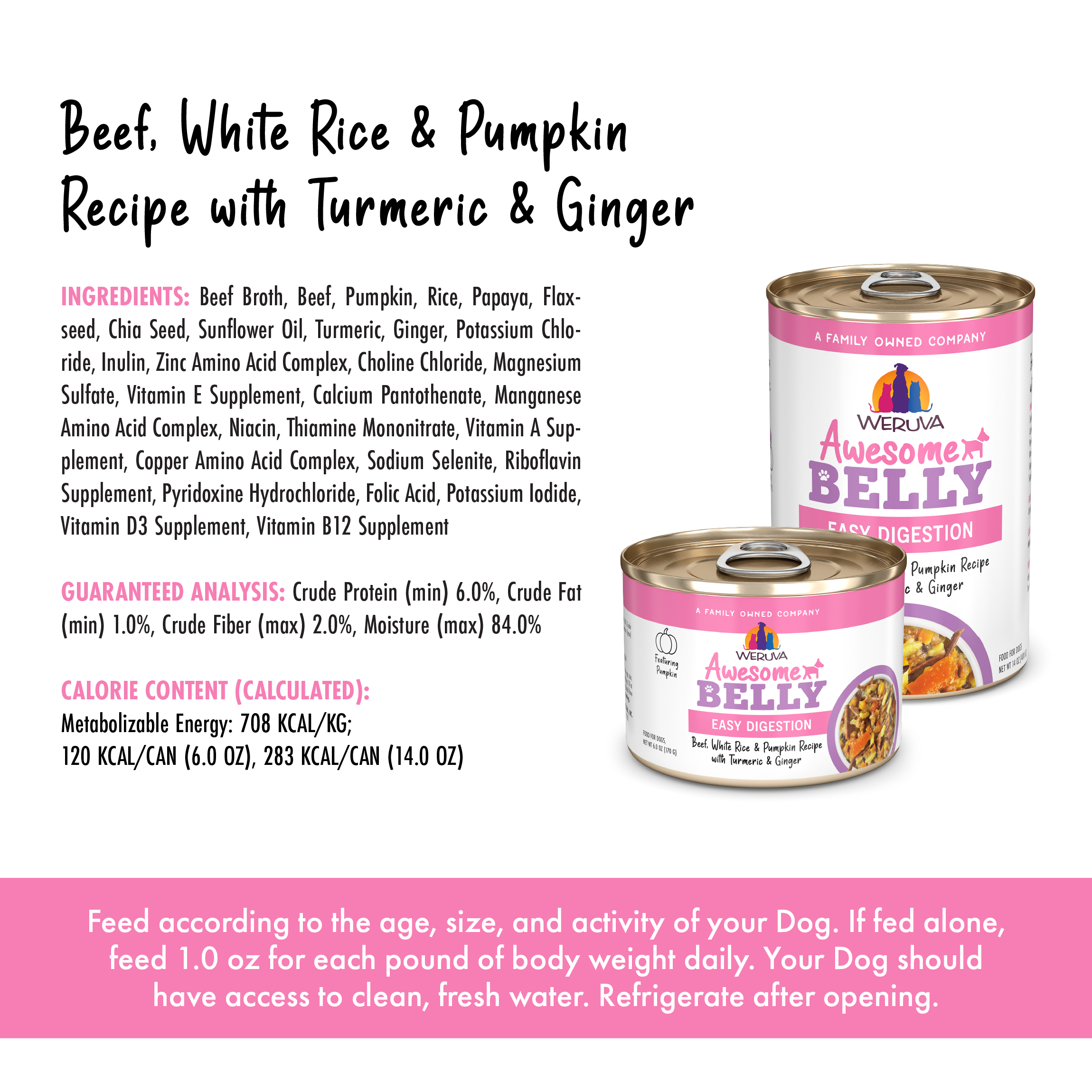 Bring comfort to sensitive stomachs with Awesome Belly! Meticulously crafted with high-quality grass-fed beef, white rice, and pumpkin, and enriched with turmeric, ginger, papaya, and inulin, this recipe promotes smooth digestion and ongoing comfort in every bowl.