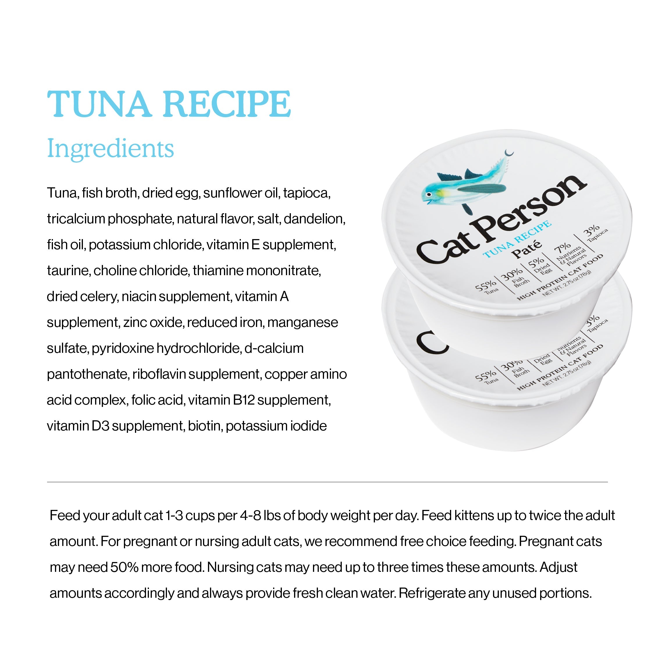 Packed with high-quality tuna, this paté delivers a protein-rich meal that provides complete and balanced nutrition to keep your cat healthy and hydrated. With our easy-open cups, serving is quick and effortless, making mealtime both simple and nutritious.