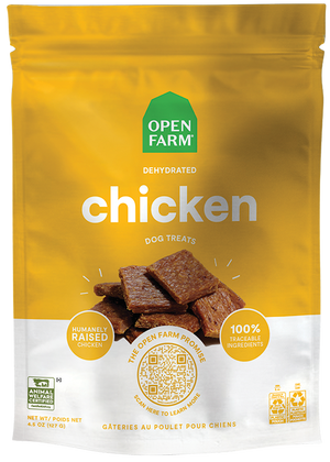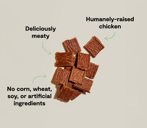 These munchable treats are packed with protein, thanks to humanely raised chicken that’s lightly cooked then dehydrated at low temperatures to retain nutrients and maximize flavor.