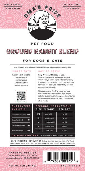 Ground Rabbit Blend is a raw mix crafted from ground rabbit meat, bone, liver, lung, kidney, & heart.