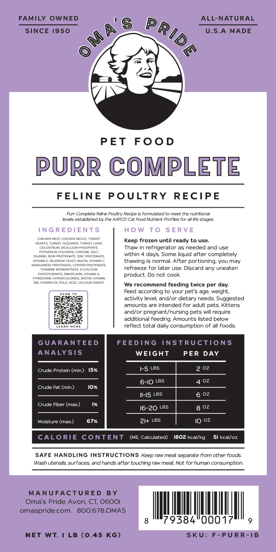 Our human-grade raw food for cats is a poultry recipe that meets and exceeds AAFCO's nutritional standards for cats of all life stages.