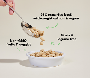 The most convenient way to feed your cat a raw-inspired diet, this minimally processed freeze-dried recipe can be an irresistible meal-mixer for your cat’s kibble or a delicious complete and balanced meal! Our Surf & Turf recipe contains a special blend of 98% grass-fed beef, wild-caught salmon and nutrient rich organ meat including beef hearts, beef liver and beef bones, a true prey-model diet your cat won’t be able to resist.