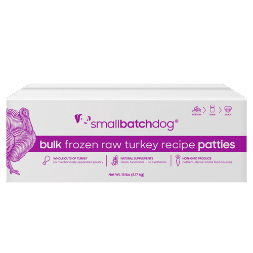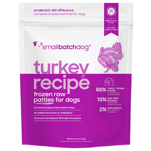 Complete and Balanced – Smallbatch Dog turkey Recipe is formulated to meet the nutritional levels established by the AAFCO Dog Food Nutrient Profiles for all life stages excluding growth of large size dogs.