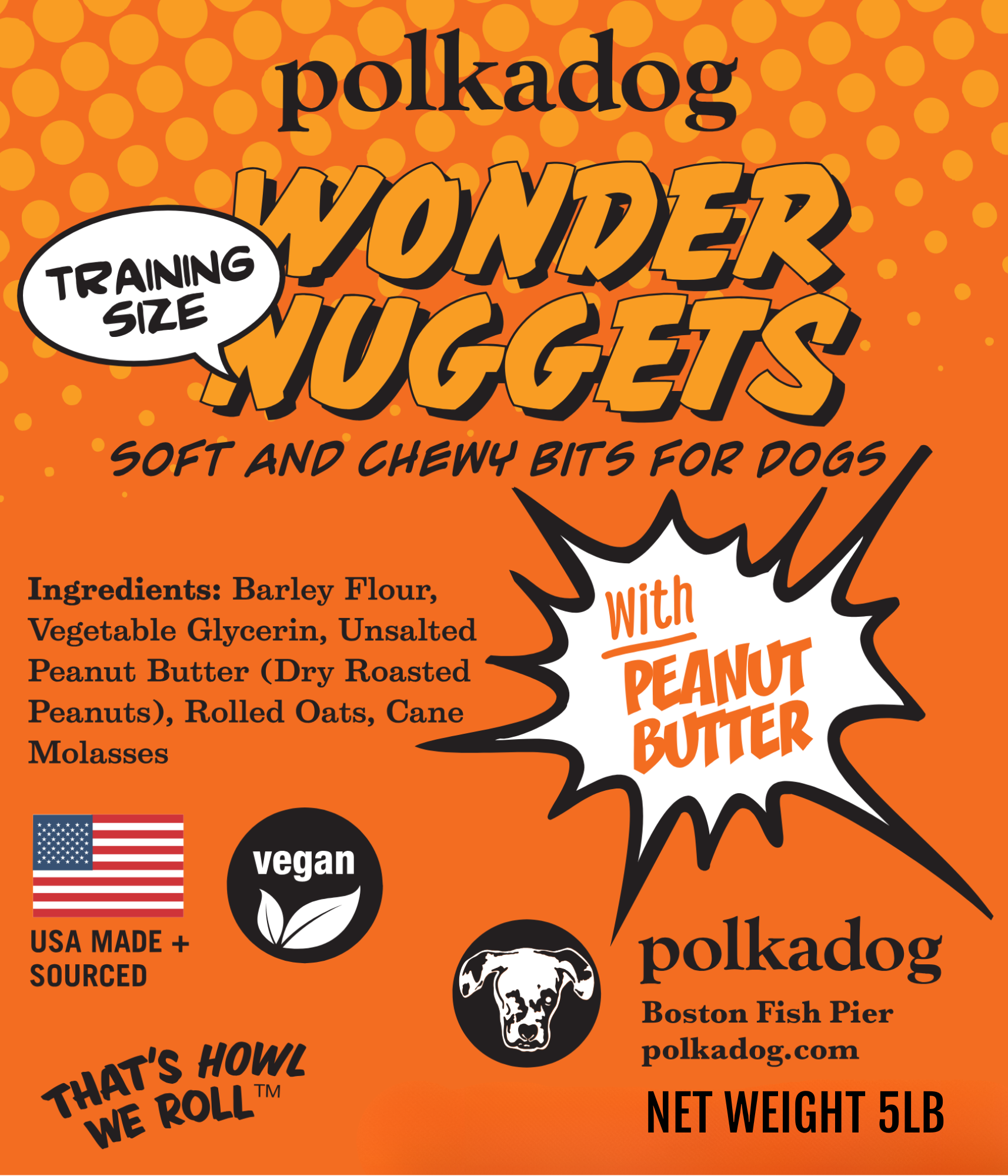 Formulated with all-natural peanut butter from none other than Teddie's Peanut Butter down the street in Everett, MA, these Polkadog peanut butter dog treats are soft, easy on the stomach, and ideally show-sized-for-training rewards or quick treats on the go.