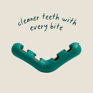 The v-shaped design of the Bite n’ Brush lets dogs brush their own teeth with special bristles sized just right to scrub plaque and tartar from all sides of the teeth and mouth. Add in a refill—packed with ingredients that support oral health like peppermint, parsley, and kelp—and let your dog chew away for 5-10 minutes. Make sure to monitor your dog while they brush their teeth! The Bite n’ Brush is designed to extend the time it takes to chew a dental treat, so you can get some peace and quiet and the active ingredients can get to work.